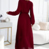Pleated chiffon dress with a wrap neckline, long sleeves, and a tied belt. Made from a flowing material in burgundy color. Perfect dress for any occasion. Brand: numoco basic. European production.