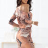 Choose comfort and style! This sporty dress from the latest Numoco collection is a perfect choice for women who value comfort and original design. Made of elastic material, it beautifully fits the silhouette, and the tie at the waist emphasizes the waist. The pattern in shades of copper, beige, and black gives the styling a unique character. The boat neckline can also be sensually dropped on one shoulder. The model has 3/4 sleeves and practical pockets. Perfect for both everyday meetings and evening outings.