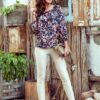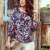 Spanish blouse with ties and elastic bands on the sleeves and shoulders of colorful floral fabric. Numoco brand. Polish product.