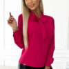 Business blouse with binding on the front, sewn from pleasant to the touch material that does not crease. Blouse in pink color. Numoco brand. Polish production.