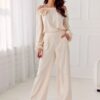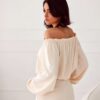 Rosie is an elegant blouse made of pleasant satin fabric. The Spanish-style neckline gives the blouse a lightness and beautifully emphasizes the shoulders, while the sewn-in elastic provides comfort and a perfect fit. The decorative rose element gives the Spanish blouse character and originality. The long, wider sleeves are finished with a thin elastic band, which adds functionality. Satin Spanish blouse is perfect for formal styling. Combined with long pants or skirt and classic stilettos, it will be an excellent choice for communions, holidays, christenings and elegant outings. Choose the Rosie blouse if you want to tastefully expose your shoulders and neckline.