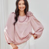 Evelyn blouse is a model created from satin material, which gives the styling an extremely elegant and luxurious look. The round neckline is decorated with a spectacular rose, which adds nonchalance and style, while making the blouse stand out with originality. Wide, puffy long sleeves beautifully expose the shoulders and feminine silhouette. Its loose fit guarantees freedom of movement and comfort when wearing. The Evelyn blouse will work perfectly in elegant and festive stylings. You can pair it with long satin trousers, a tight midi skirt, and a straight-cut blazer with long knee-high boots to create an extremely eye-catching styling suitable for holiday outings and elegant celebrations. The product is produced and sewn in Poland.