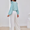 Blouse Evelyn is a model created from satin material, which gives the styling an extremely elegant and luxurious look. The round neckline is adorned with a spectacular rose, which adds nonchalance and style, while making the blouse stand out with originality. Wide, puffy long sleeves beautifully expose the shoulders and feminine silhouette. Its loose fit guarantees freedom of movement and comfortable wear. Blouse Evelyn will work perfectly in elegant and festive stylings. You can pair it with long satin pants, a tight midi skirt, and a simple-cut blazer with long knee-high boots to achieve a very impressive styling suitable for holiday outings and elegant celebrations. The product is manufactured and sewn in Poland.