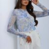 A tulle blouse with long sleeves is a unique piece of clothing that combines lightness and elegance. Made of delicate material, it subtly emphasizes the silhouette, giving the styling a sophisticated character. The round neckline provides a classic and versatile look, and the colorful print on the material adds originality and expressiveness. Perfect for both everyday wear and special occasions, it pairs well with elegant skirts as well as casual jeans.
