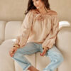 Shirt in the style of a Spanish with long, puffy sleeves finished with an elastic band. It has an elastic band at the neckline, which allows for adjustment and proper regulation. Decorative rose element.