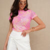 Tulle blouse with short sleeves is a unique wardrobe piece that combines lightness and elegance. Made of delicate, semi-transparent material, it subtly emphasizes the silhouette, giving the styling a feminine charm. The round neckline adds a classic character, and the colorful print attracts the eye and gives the blouse a unique expression. Perfect for both everyday wear and special occasions, it pairs well with jeans, a skirt, or elegant pants.