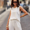 Smooth blouse with a simple cut. Short sleeves and standard length reaching to the hips. Decorative fastening on the back with a small button.