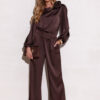Blouse Evelyn is a model created from satin material, which gives the styling an extremely elegant and luxurious look. The round neckline is adorned with a spectacular rose, which adds nonchalance and style, while also making the blouse stand out with originality. Wide, puffy long sleeves beautifully expose the shoulders and feminine silhouette. Its loose fit guarantees freedom of movement and comfort when wearing. Blouse Evelyn will work perfectly in elegant and festive stylings. You can pair it with long satin trousers, a tight midi skirt, and a simple cut blazer with long knee-high boots to achieve an extremely striking styling suitable for holiday outings and elegant celebrations. The product is manufactured and sewn in Poland.