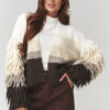 Stylish women’s sweater in gray and beige is a combination of comfort and exceptional design. The model made of soft, pleasant to the touch yarn provides warmth and comfort on cooler days. The loose one size fits all cut perfectly adapts to the silhouette, guaranteeing freedom of movement and a fashionable look. Sleeves decorated with eye-catching fringes give the sweater an original character, and the delicate transition of colors from light to darker creates an elegant, modern ombre effect. Perfect for jeans, leggings or skirts, it will work great both for everyday wear and for meetings with friends.