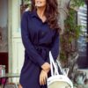Shirt dress with buttons undone to the very bottom, navy blue color. It can also be worn unbuttoned as a coat. Made of pleasant to the touch, low elasticity material (95% polyester, 5% elastane). Brand numoco.