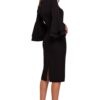 An elegant proposition for special occasions, emphasizing the feminine silhouette. Its phenomenal character is given by sleeves that will move beautifully, responding to your every move. Dress is fastened with a covered zipper.