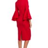 An elegant proposition for special occasions, emphasizing the feminine silhouette. Its phenomenal character is given by sleeves that will move beautifully, responding to your every move. Dress is fastened with a covered zipper.