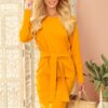 Dress with wide belt, can be tied both at the front and at the back. Pleasant-to-the-touch material in a trendy mustard color. Brand numoco. Polish production.