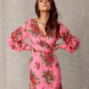 Deep neckline, long buffet sleeves finished with a button cuff. The mini length will highlight the legs in a wonderful way, and the gently flared hem will allow you to conceal minor imperfections and optically slenderize the entire figure. Fastened on the side with a covered zipper. The mini dress with an envelope neckline was created for women who like to look striking and attract their attention without too much effort. All you need to do is to choose the right footwear, and in this case the best choice will be high-heeled shoes, which will give the whole thing character. This model of dress will allow you to create an elegant, timeless styling, which is perfect for various celebrations, such as weddings, communions, birthdays, parties with friends, special banquets. The product is manufactured and sewn in Poland.