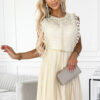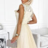 Dress with lace, tulle skirt and gold belt. Dress in beige color. Brand numoco. European production.