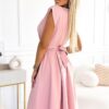 Scarlett is a lovely dress with a flared cut, characterized by an elegant envelope neckline and a belt that accentuates the waist. It is made of high-quality material that is pleasant to the touch. Its delicate shade of powder pink adds subtlety and femininity. The numoco brand guarantees high quality workmanship, and production in Poland testifies to the attention to high quality sewing. This dress is an ideal choice for various celebrations, such as christenings, weddings, communions or evening outings, giving every woman an elegant and chic look.