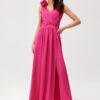 Paloma is a classic maxi dress model on thick, gently crinkled straps, which will fit perfectly on any figure. It has a layered neckline and a delicate cutout on the back, so it beautifully emphasizes the bust and exposes the back. The slit on the leg adds sensuality and lightness. Made of decent satin fabric, which gives elegance and exclusivity. Comes with a decorative rose on a string. Fastened at the back with a zipper. To complete the full styling match the dress with elegant heeled shoes and a small clutch bag in contrasting colors. The Paloma dress will be a suitable choice for important, solemn celebrations. You will feel extremely elegant and comfortable in it.