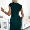 Elegant midi dress with asymmetrical basque and small short sleeves. The dress optically slims the waist and hides imperfections in the hip area. Made of fleshy, slightly stretchy material in green. Brand Numoco. Polish product.