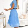 Pleated dress with a round neckline, black belt, and short sleeves. Made of chiffon blue fabric with lining. The perfect dress for any occasion. Brand: numoco basic. Made in Europe.