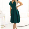 Scarlett elegant, flared dress with a wrap neckline and a belt emphasizing the waist. Made of a pleasant to the touch material (95% polyester, 5% elastane) that beautifully drapes on the silhouette. The dress in a classic, green color is a perfect choice for many occasions, from everyday meetings to elegant outings. Polish product. Numoco brand.