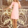 Neva – trapeze comfortable dress with flared sleeves and bows, very feminine. Dress in pastel pink. Polish product.