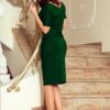 Green dress with a neckline, binding and pockets, pleasant to the touch cotton fabric. Polish production. Brand Numoco.