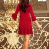 Beautiful and modest burgundy dress with delicate pleats on the sleeves and skirt. Brand numoco.