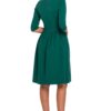 A flared midi dress for classic cut lovers. The top of the dress is fitted with darts, and the flared bottom looks nice on the move. Dress is fastened with a covered zipper. A classic, very feminine proposition for women who like to look elegant in any situation!