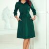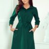 A flared shirt dress in the color of bottle green. Made of pleasant to the touch, low elasticity material (95% polyester, 5% elastane). Brand numoco.
