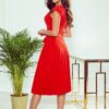 Pleated dress with short sleeves and a belt. Fastened at the back with a covered zipper. Dress in red. Brand numoco. Polish production.
