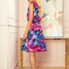 Loose trapeze dress with blue and pink large flowers. Brand numoco. Polish production.