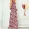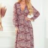 Chiffon midi dress with a deep neckline and long sleeves. Dress made of patterned material. Made in Poland. Brand Numoco.