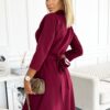 Shirt-like flared dress with pockets in burgundy color. Made of pleasant to the touch, low stretch material (95% polyester, 5% elastane). Brand numoco. Polish production.