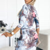 Sporty dress with binding, 3/4 sleeves and pockets, flowers on a stone background. Made of stretchy material with a slightly suede texture. Polish product. Brand numoco.