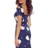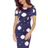 Elegant cotton dress with short sleeves. Dress made of fabric with pink flowers on a navy blue background. Bergamo brand. Polish production. LIMITED EDITION