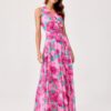 The dress is decorated with a floral pattern, which adds lightness and delicacy to the overall look. The neckline of the dress is designed with an overlap, which makes the dress look very subtle and elegant. The tapering at the waist gives the dress a feminine shape, and at the back it transitions into a tied charming bow. The dress has no lining. Thick straps give the dress a subtle elegance and classiness. The skirt of the creation is skillfully layered, at the same time not revealing the legs, while the whole thing fits perfectly on the figure. The product is made and sewn in Poland.