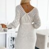 Openwork dress with long sleeves, neckline and binding. Made of sweater-like warm material in beige color. It can also be worn over one shoulder. European production. Brand numoco basic.