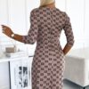 Mary classic dress with gold locks, 3/4 sleeves and trapeze skirt. Made of pleasant to the touch elastic material in beige color with black pattern. Polish product. Brand numoco.