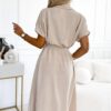 Beige emery with gold buttons, waist tie and short sleeves. Brand numoco basic. European production.