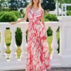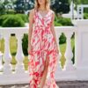 The dress is made of a pleasant, airy chiffon fabric. It has a lining that prevents the material from showing through. The maxi length gives it elegance and elongates the silhouette. The overlap neckline perfectly elongates the neck, and the delicate cutout on the back subtly reveals the back. The dress fits perfectly around the waist, emphasizing the feminine silhouette, and the airy chiffon skirt has a leg slit, which adds finesse and lightness to the whole look. The dress fastens at the back with a covered zipper. Lorena dress is an ideal creation for weddings, summer outings or garden celebrations. The cut of the dress will work perfectly on any figure. You can easily match it with accessories that will enrich the styling and emphasize the uniqueness of the dress. Opt for plain shoes sandals or pumps and a small chain handbag and enjoy an elegant styling that will impress you with its comfort and beautiful appearance. The product is made and sewn in Poland.