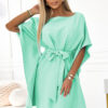 Women’s butterfly dress with a waist tie. The dress is mint green in color. Made from a pleasant to the touch material. Numoco brand. Made in Poland.