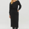 A sweatshirt dress is a casual midi-length creation, perfect for everyday wear. It has a loose cut in the upper part and long raglan sleeves that emphasize its free and sporty character. The neckline is rounded, simple, and subtle, which suits the overall, minimalist style of the dress. There is a wide, elastic waistband that accentuates the silhouette, adding a feminine touch to this simple design. The bottom of the dress is straight, pencil-shaped, reaching the knee. This cut provides comfort while emphasizing the feminine silhouette. There are practical pockets on the sides, making it functional and comfortable. The dress is universal and comfortable, perfect for everyday outings. It combines sporty comfort with elegant minimalism, making it an ideal choice for various occasions, both for work and social gatherings.