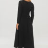 A flared dress is a perfect choice for people who value a combination of style and functionality. The model has a classic, feminine cut of midi length with a flared bottom. Made of soft, comfortable material, which works great in everyday use. The dress has long sleeves, making it perfect for cooler days. The waist cut gives the effect of subtle gathering, which accentuates the figure and adds charm to the dress. The characteristic element is large, sewn-on pockets on the front, additionally decorated with an elegant gold-plated detail, which not only adds style, but also serves a practical function. This model combines comfort and fashionable design, making it an ideal choice for various occasions.
