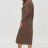 A sweatshirt dress is an elegant yet simple proposition for everyday wear that combines minimalism with a touch of style. The model has a simple, body-hugging cut that emphasizes the silhouette but remains comfortable. The length of the dress reaches mid-calf, giving it a classic character. The soft and flexible material provides comfort for all-day wear. The dress has long sleeves, perfect for cooler days. The neckline has a V-shape, which visually elongates the neck and adds elegance. There is a subtle slit at the bottom of the front of the dress, which adds lightness and allows for freedom of movement. You can pair it with white sneakers for a sporty yet elegant look or wear it with ankle boots or ballet flats to achieve a more formal effect. This dress is the perfect choice for everyday outings, meetings with friends, or work. Thanks to its simple cut and elegant details, it can be easily styled for various occasions.