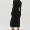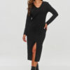 A sweatshirt dress is an elegant yet simple proposal for everyday wear that combines minimalism with a touch of style. The model has a simple, body-hugging cut that accentuates the silhouette while remaining comfortable. The dress length reaches mid-calf, giving it a classic character. The soft and stretchy material ensures comfort all day long. The dress has long sleeves, perfect for cooler days. The neckline has a V-shape, which visually elongates the neck and adds elegance. There is a subtle slit at the bottom front of the dress, which adds lightness and allows for freedom of movement. You can pair it with white sneakers for a sporty yet still elegant look, or wear it with booties or ballet flats for a more formal effect. This dress is the perfect choice for daily outings, meetings with friends, or work. With its simple cut and elegant details, it can be easily styled for various occasions.