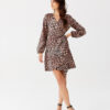 The dress is made of a pleasant patterned fabric that looks extremely feminine and tasteful. The envelope cut dress has a tie at the waist, which will perfectly emphasize any type of figure. The shorter mini length emphasizes the legs and ensures freedom of movement. Long sleeves with a delicate crease on the shoulders are finished with an elastic band, which builds a buff effect. A convertible neckline emphasizes the neck and elongates the silhouette. Cassie model is a dress that can be used for various occasions. Paired with elegant heeled shoes and a small clutch bag, it will be a great choice for more formal events. Matching it with shoes like ballerinas or espadrilles, you will create a more casual, girly look. The product is made and sewn in Poland.