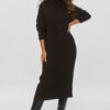 Knitted dress with a simple, elegant cut is a stylish and extremely versatile creation ideal for women who appreciate timeless style. The model has a length below the knees, and its bottom is made of a weave imitating a ribbed pattern, which emphasizes its interesting texture. The upper part of the dress has a plain pattern, and the collar is finished with a turtleneck, which gives it a warm and cozy character, perfect for colder days. The dress has long, slightly fitted sleeves, which emphasizes its minimalist and elegant style. It is ideal for both casual wear and more formal occasions.