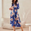 Midi dress with long sleeves. Top wrap, and bottom slightly flared. It does not have a lining, with double tying at the waist.