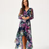 Asymmetric maxi dress. Flared bottom, top with a wrap neckline and amazing long puffed sleeves with decorative slits. Sleeves finished with elastic band. The dress narrowed at the waist will perfectly emphasize the waist area. Fastened at the back with a zipper with a delicate back exposure. The dress has a sewn-in slip, so the material will not be see-through. Just add delicate jewelry and you will dazzle everyone around you. The cut and length will be perfect for every figure, giving lightness to the silhouette and adding visually a few centimeters in length. The flowing and delicate material will gently wave with every move you make, leaving an unforgettable impression. The product is manufactured and sewn in Poland.