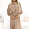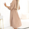 Stylish and extremely feminine trench coat is a perfect choice for any occasion! The shirt cut emphasized by elegant golden buttons and a waist tie beautifully shapes the silhouette, providing comfort at the same time. The 3/4 sleeve adds lightness and subtle elegance, making the dress suitable for both everyday wear and more formal outings. The warm mocha mousse shade will highlight your beauty, and the high-quality material guarantees comfort and freedom of movement throughout the day. Numoco Basic brand.